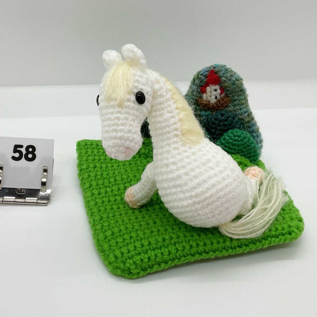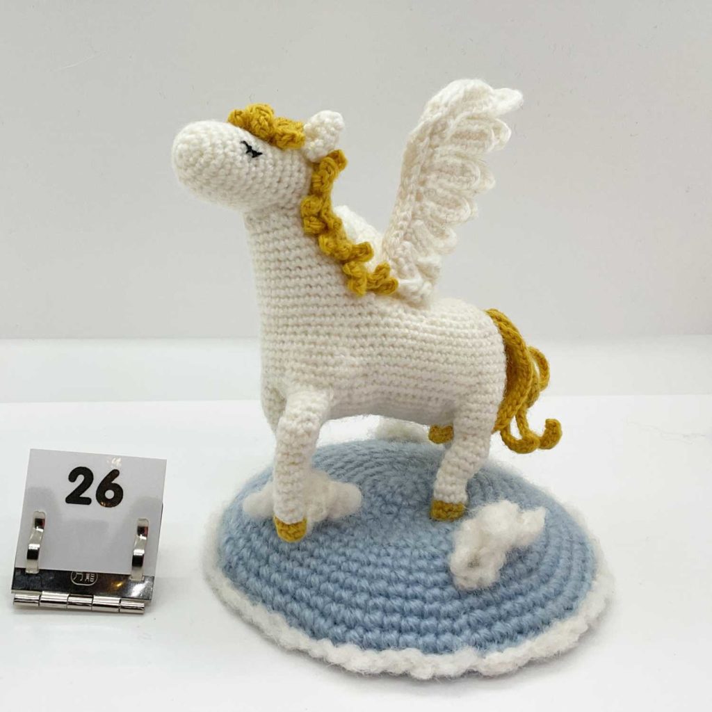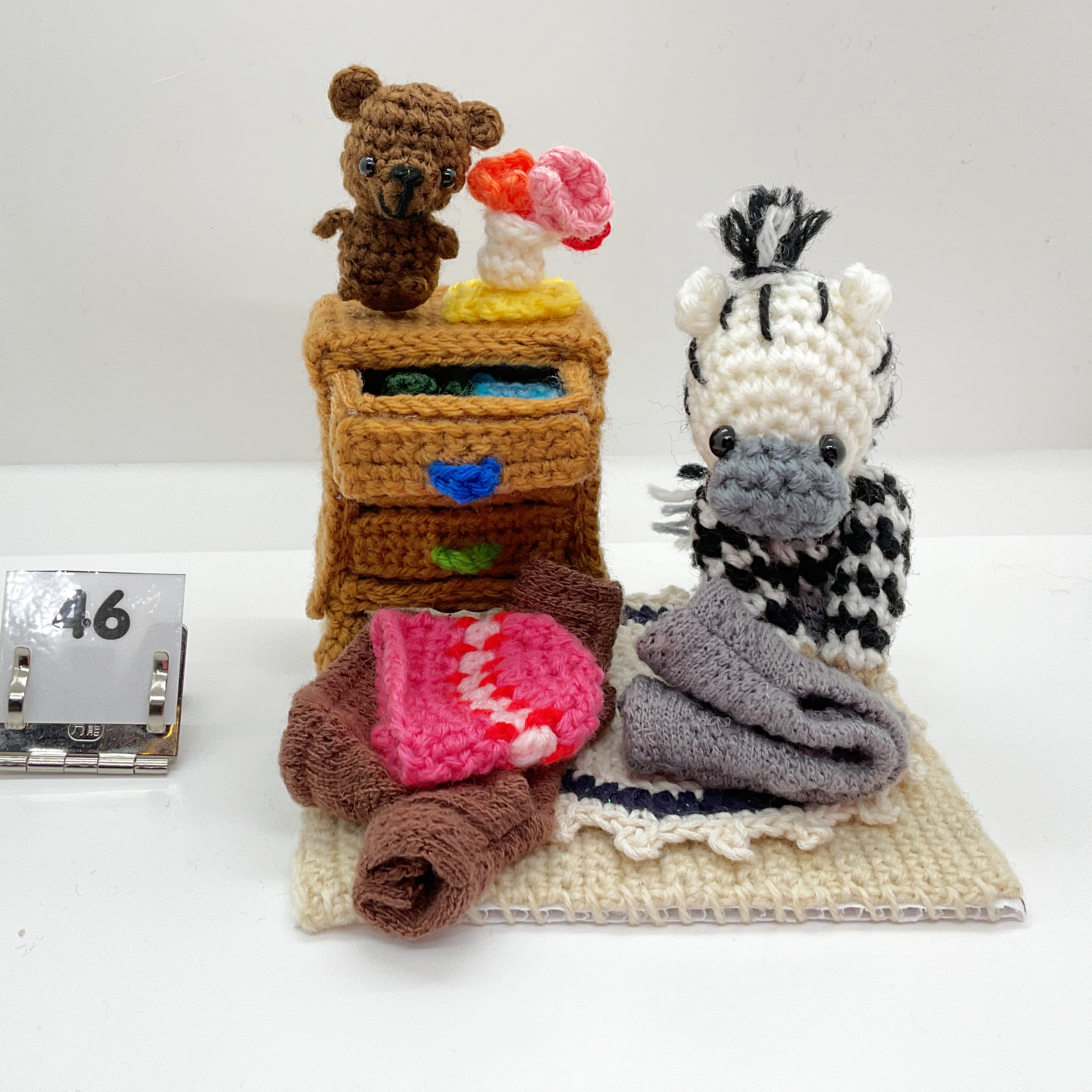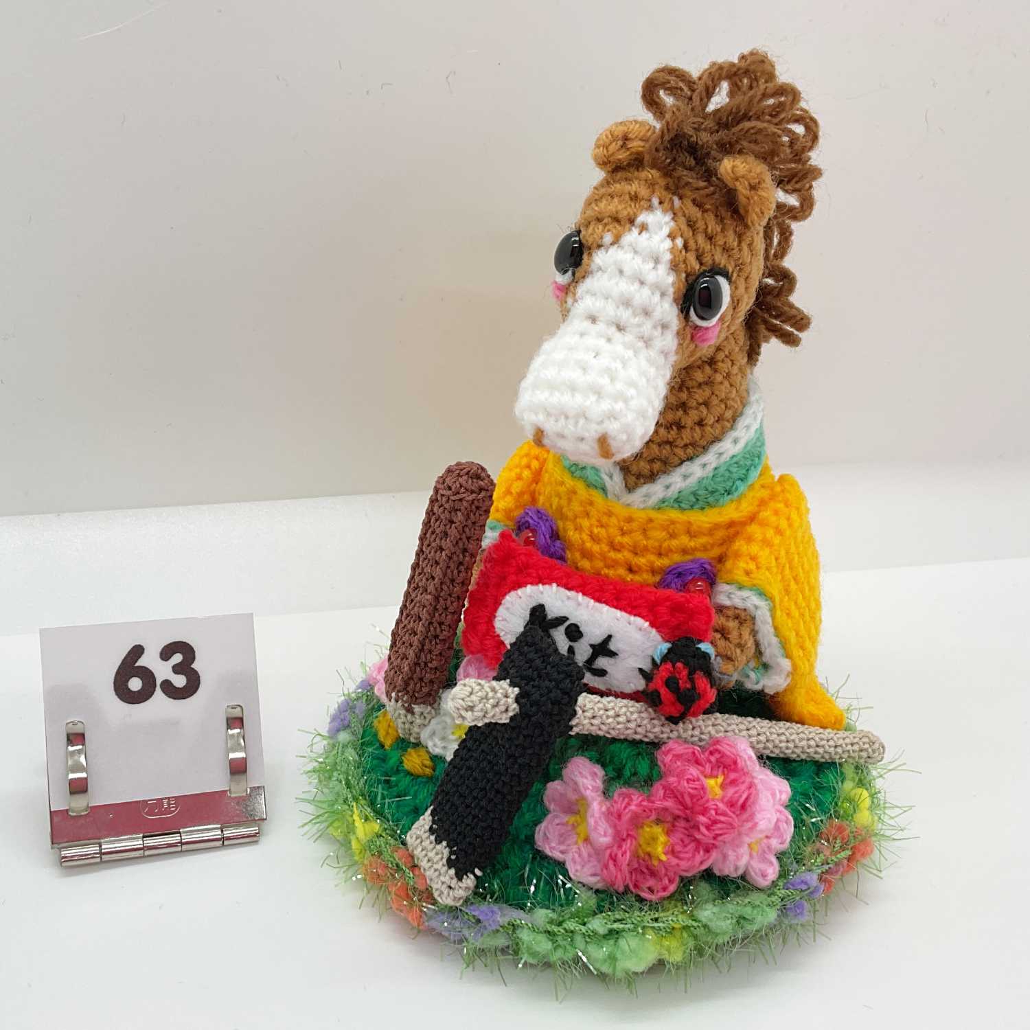 てぬぐい(青)、かぎ針2nd model 6本セット、マスキングテープ、ステッカー2枚、トロフィー、次回あみコレ出展招待